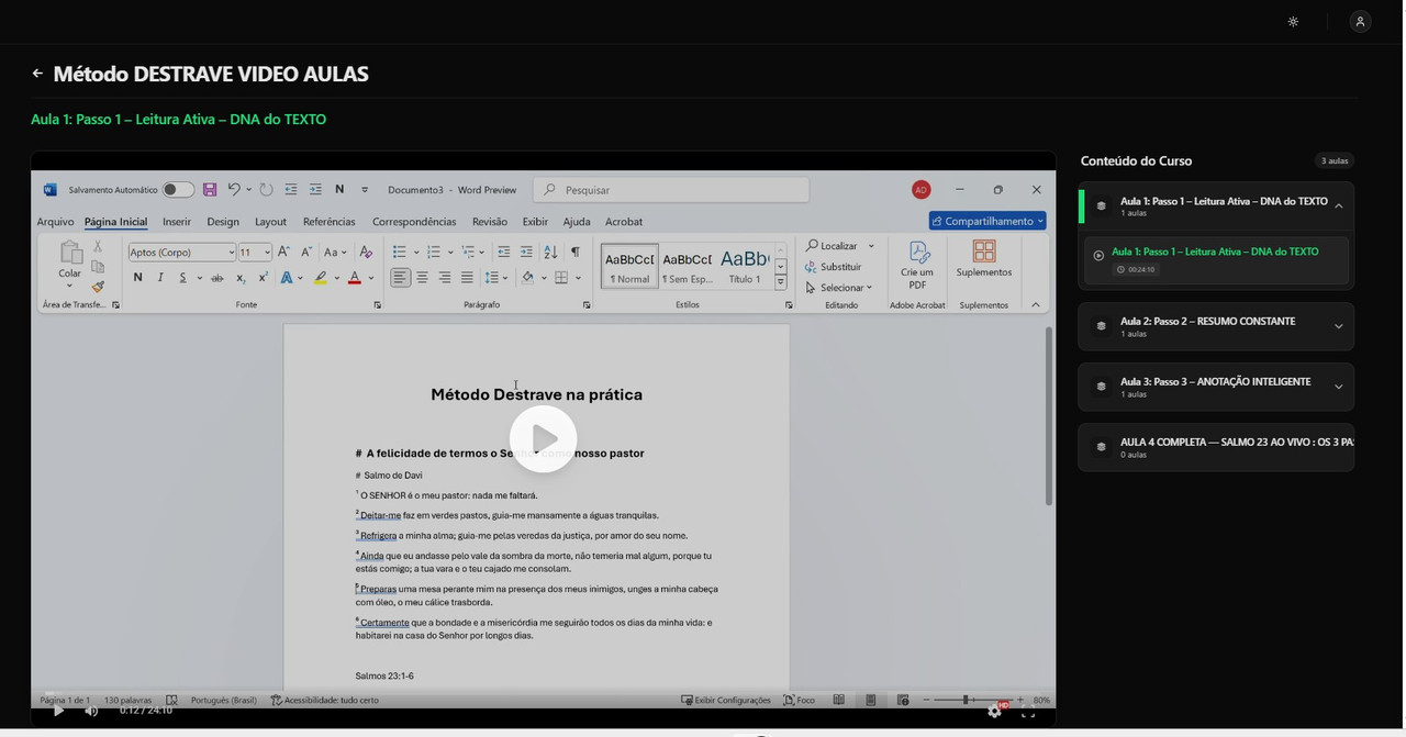 🎬 Aula 4: Salmo 23 — aplicação completa ao vivo