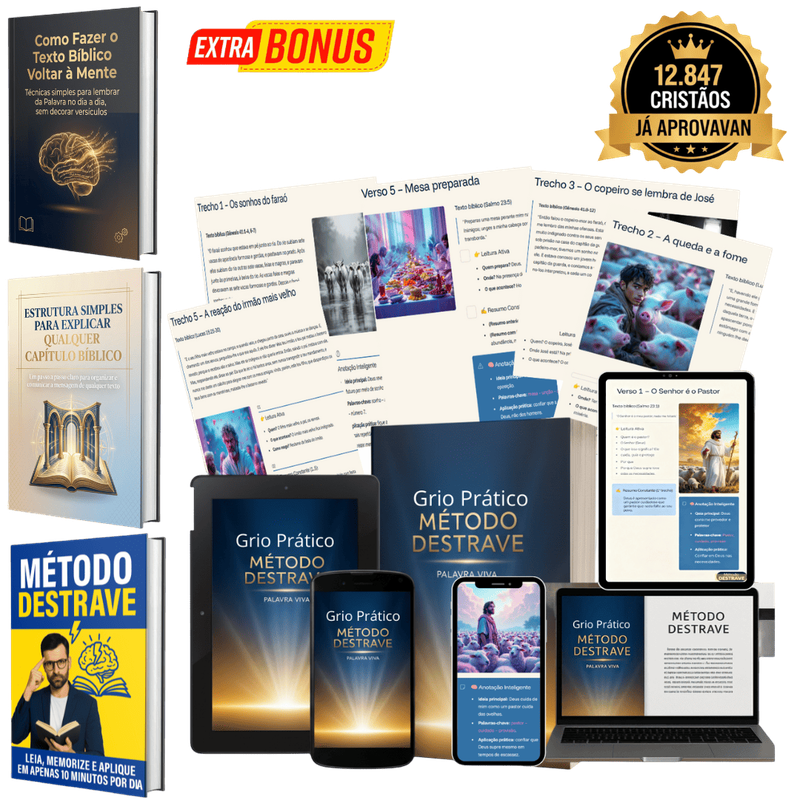 O Método Destrave te ensina a ler um capítulo da Bíblia e Lembrar de Tudo que Leu. Você baixa no celular e começa a usar hoje. 12.847 cristãos já usam.